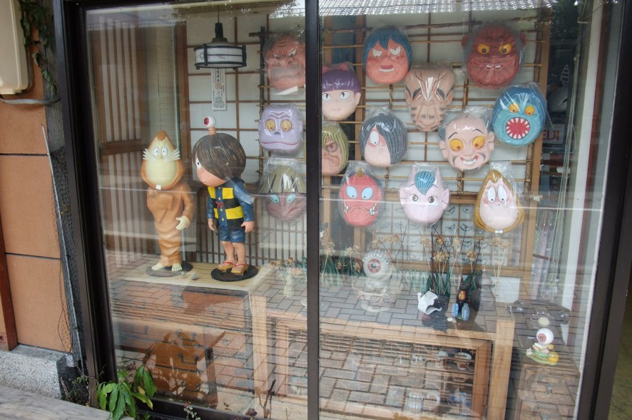 On the other side of Honshu, on the north coast, where the winters are cold, dark and long, there is a little village called Sakaiminato. It is well known for fishing and it is the birthtown of Misuki Shigeru, famed author of manga. Most famous are probably the numerous adventures of the half-yokai boy Kitaro and his friends.