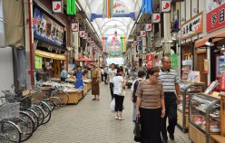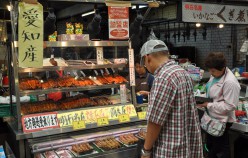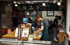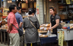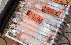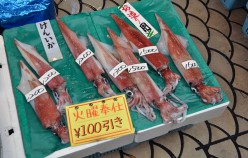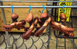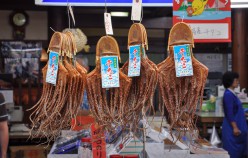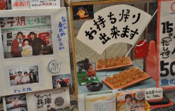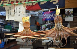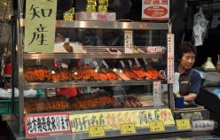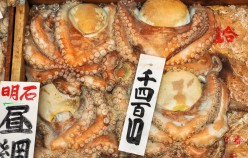 Akashi is a Port Town and its fresh fish is famous, really famous – in particular the octopus and squid. In fact, wandering around town you encounter octopus in all varieties, including an octopus boat service and as sweets in the form of lollies, which promise to cure headaches and restore energy. Uontana (short for Uo no Tana (fish selves) is a roofed shopping street close to the sea, where local fishermen display and sell the fish that is caught in the Akashi Strait. Indeed the fish is amazing! The unlikeliness factor is shockingly high. And Uontana has been here for more than 400 years!