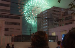 To be honest, staring at the fireworks rising up in the sky in variation after variation I was may be overly stunned, so I forgot to take pictures for a while (but remembered eventually). We left the main area quite a bit before the end to avoid the rush of people returning home. (although we were not the only ones to have this idea). You can see that a bit in the pictures.
