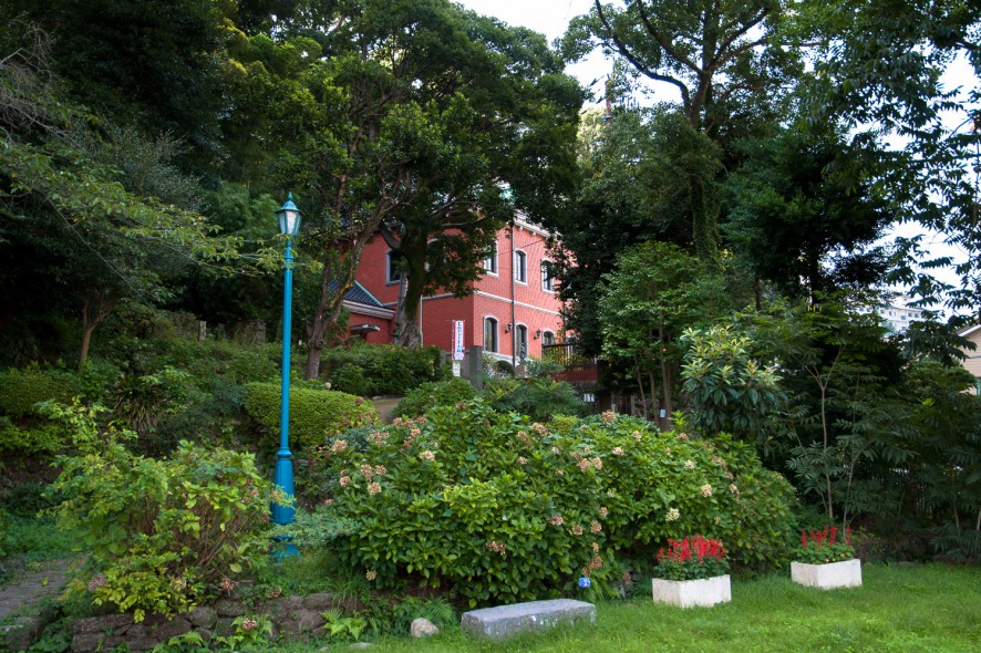 Somehow, it felt as if there had been a memory of a house – a red-bricked, western style house on a slope behind bushes of hydrangeas, many many bushes of hydrangeas, in this deep green that is so common around these areas. As it turns out there is house here – red bricked – surrounded by incredible trees and indeed hydrangeas. It is a memorial museum.