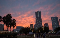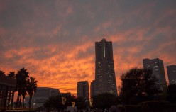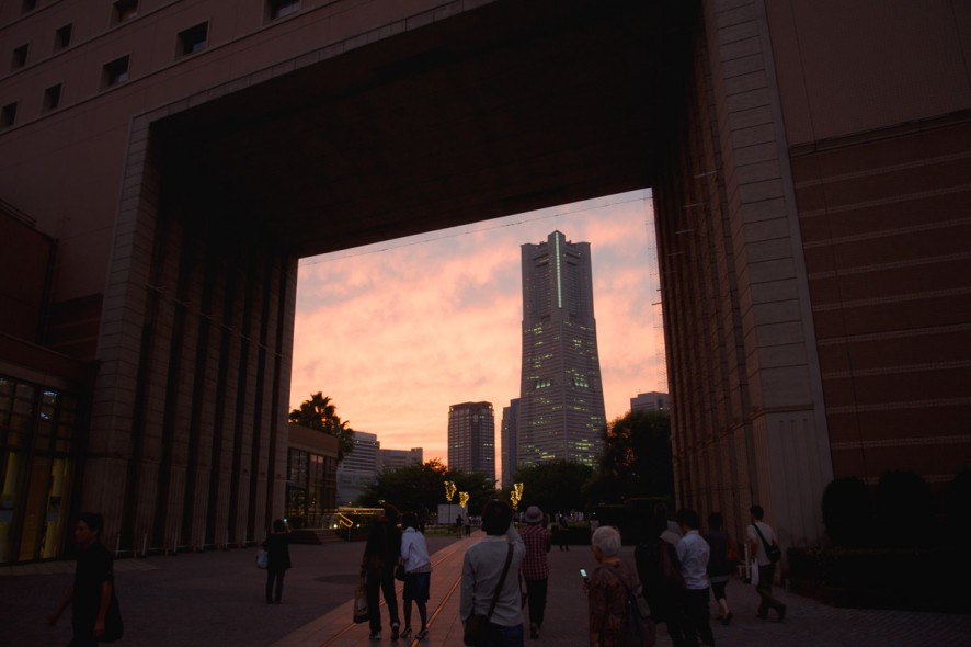 Yokohama Evening Skyline After a day that started grey a spectacle in the evening … LandmarksYokohama Published on September 19, 2009September 19, 2009By natsumeneko Above: One of the portals. Not quite sure what kind of portal but a big one it is. Yokohama Evening Skyline Walking from the red sky of sun set to the calm deep blue of the moon.